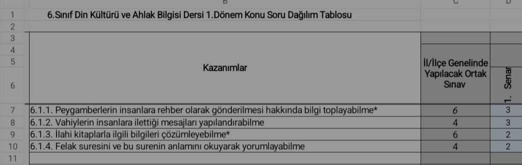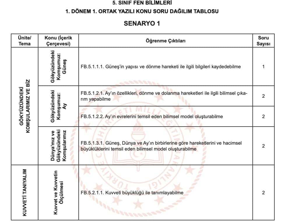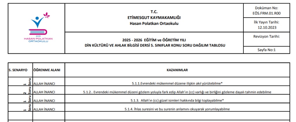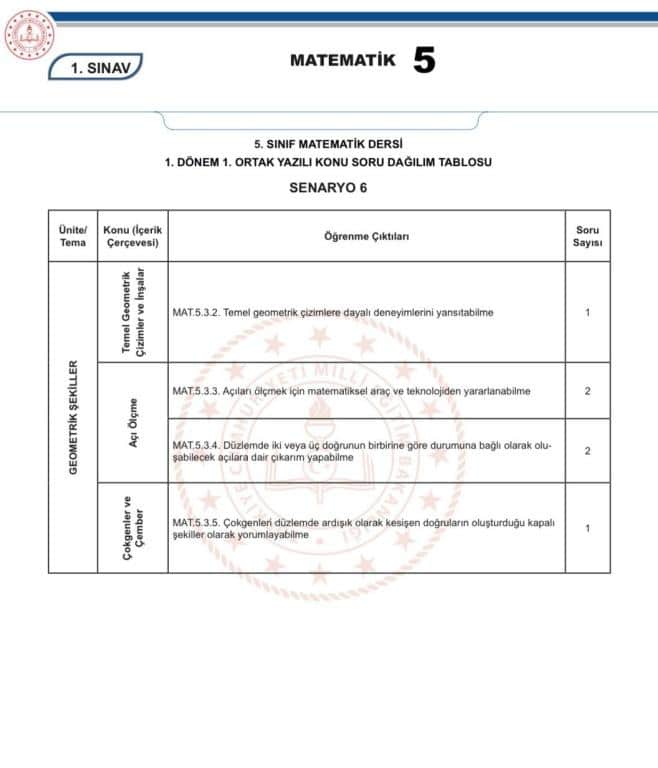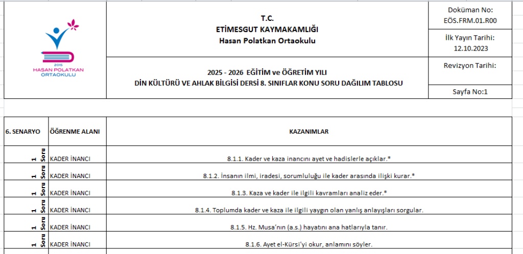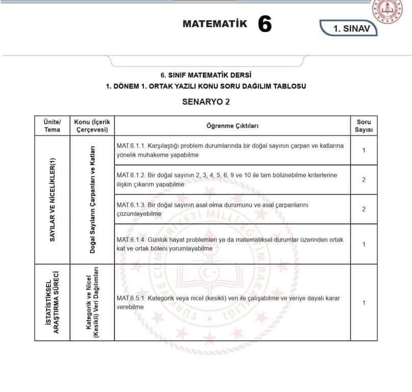 2025-2026 Eğitim Öğretim Yılı 1. Dönem 1.Ortak Sınav Takvimi