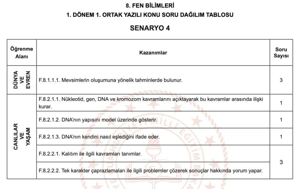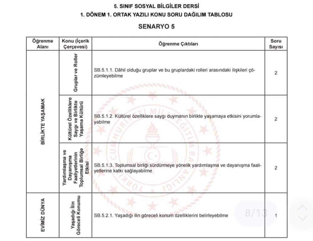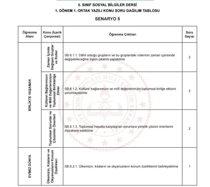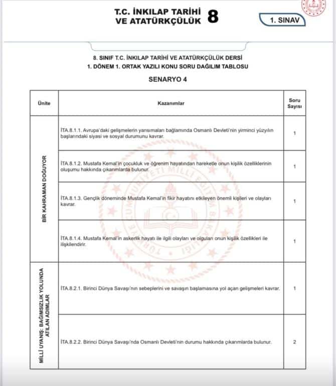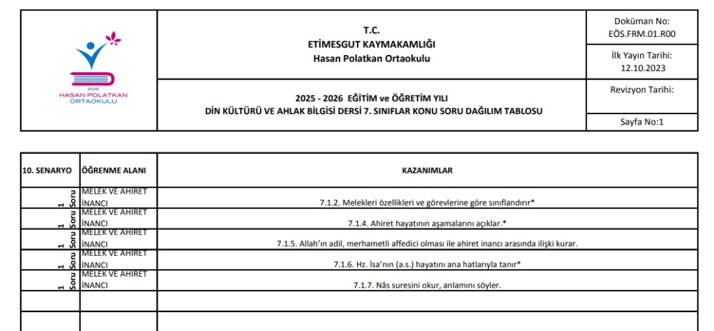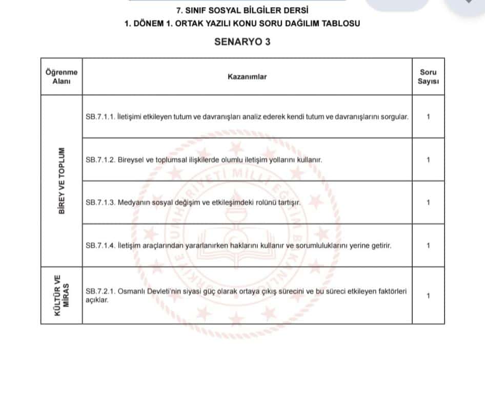 2025-2026 Eğitim Öğretim Yılı 1. Dönem 1.Ortak Sınav Takvimi