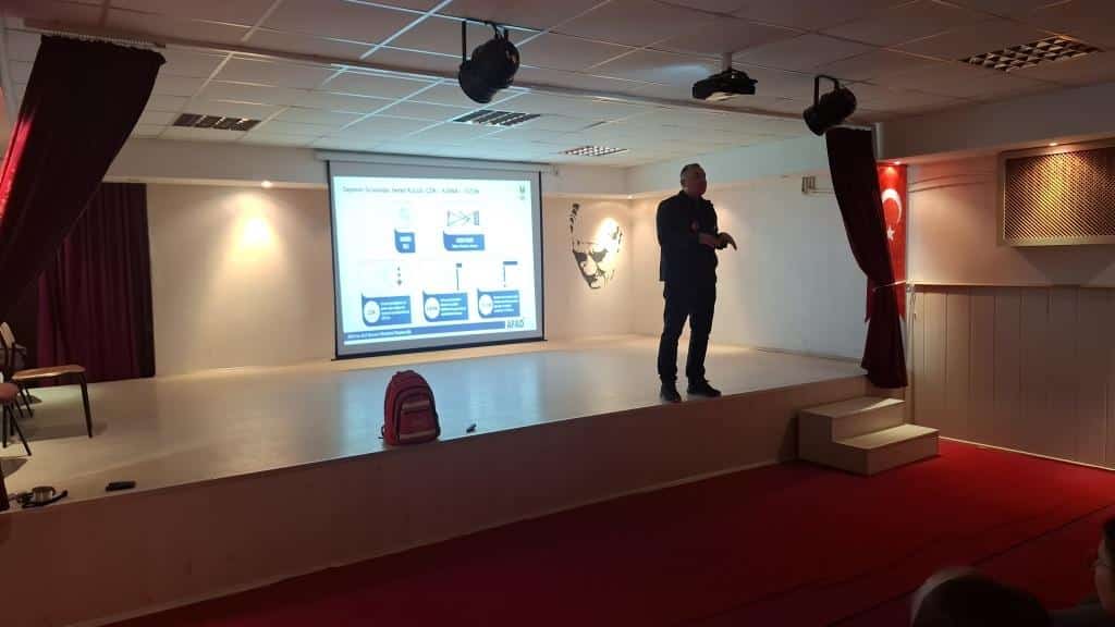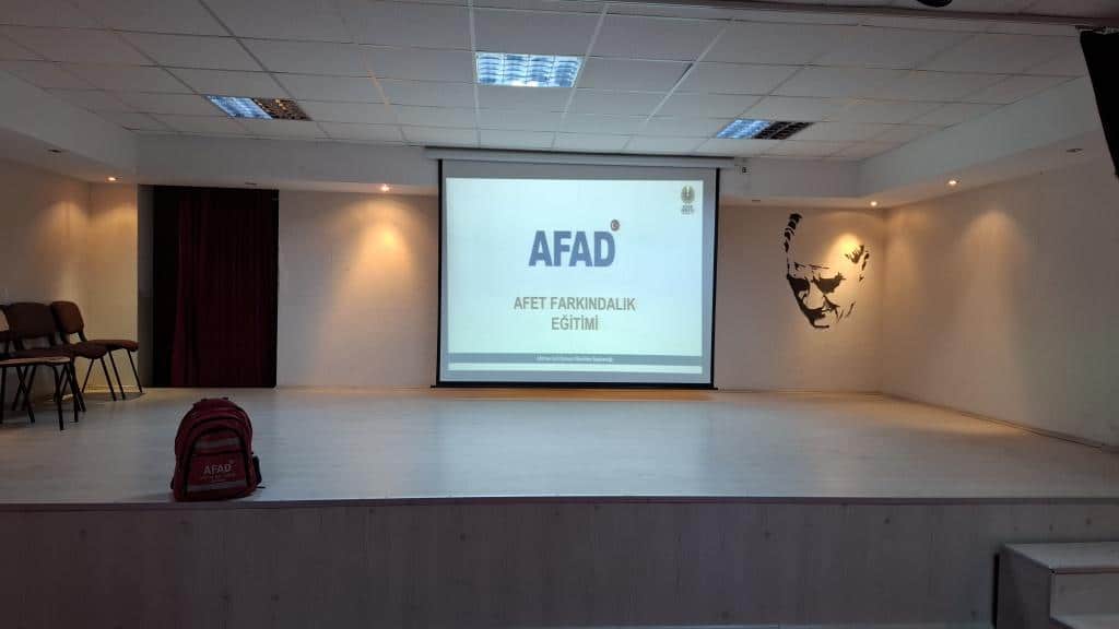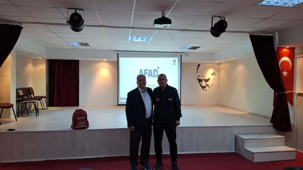 Okulumuz konferans salonunda AFAD eğitmeni Murat Topal tarafından öğrencilerimize afet farkındalık eğitimi verildi. Eğitimde, deprem ve diğer afetlerde alınması gereken önlemler ile doğru davranış biçimleri hakkında bilgilendirme yapıldı. Öğrenciler, afetlere karşı hazırlıklı olmanın önemi konusunda bilinçlendirildi.